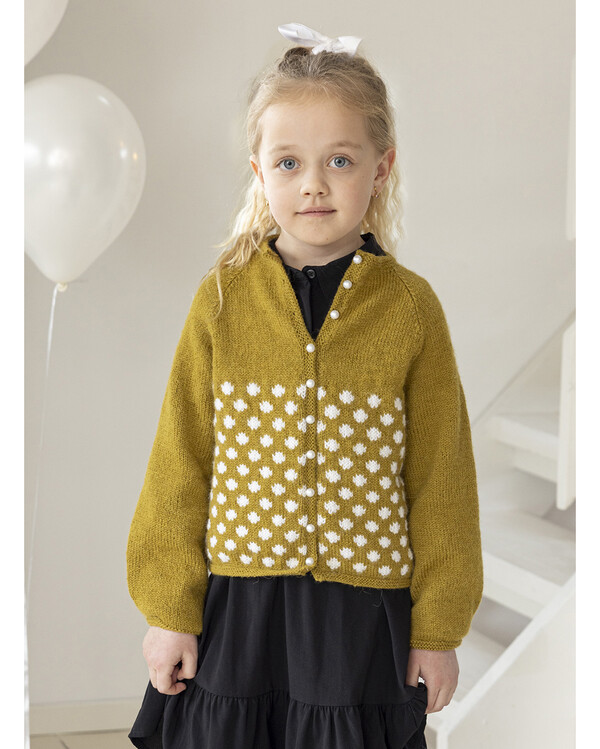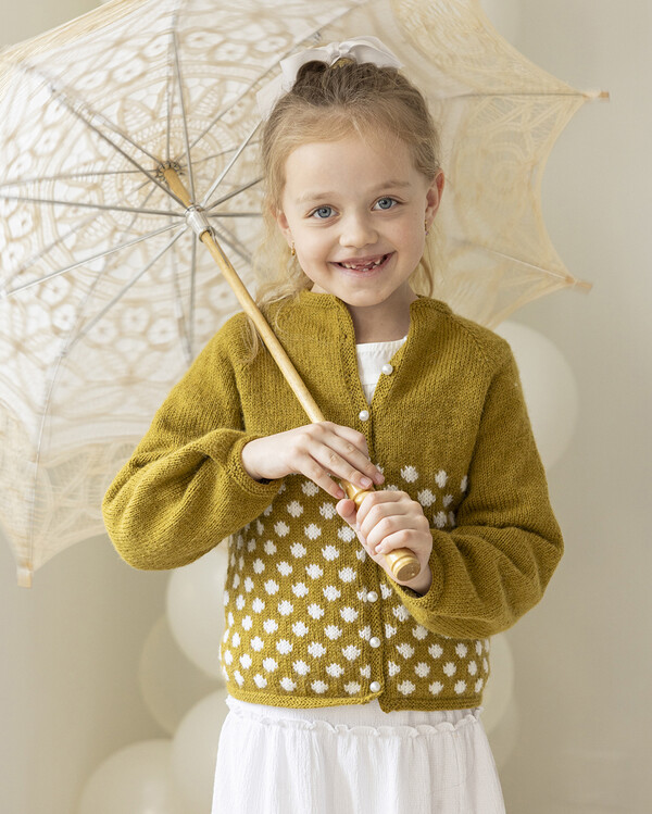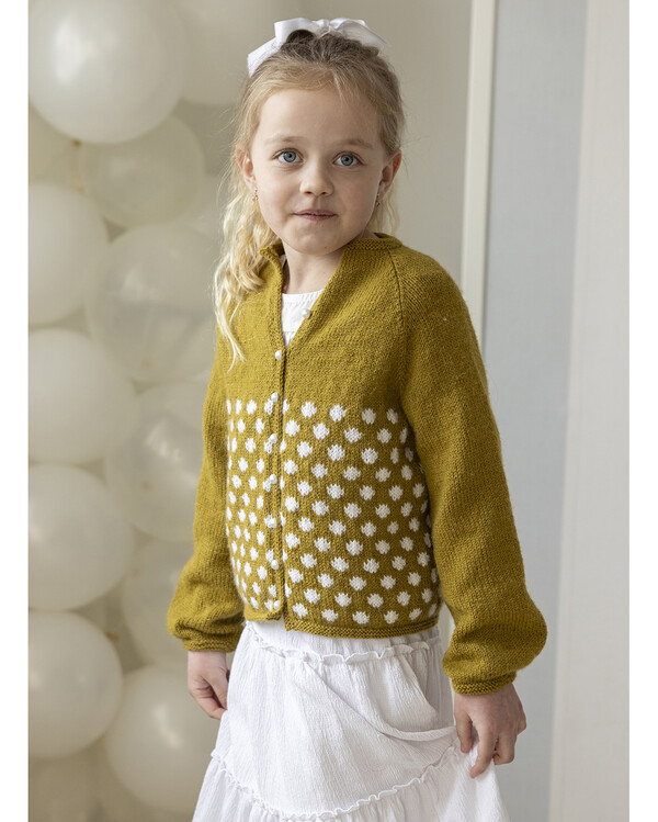 Ett lekfullt stickmönster på en barnkofta med prickigt mönster. Den mjuka modellen och fina detaljerna gör den både bekv...