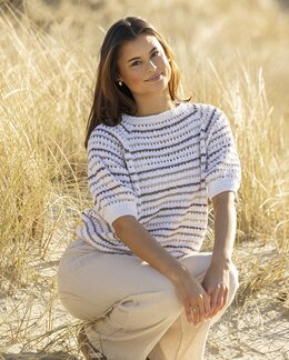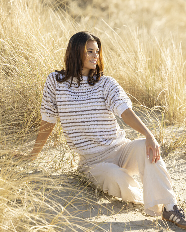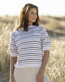 Ett modernt stickmönster till en randig topp i mjuka sandfärger. Den minimalistiska designen gör plagget lätt att matcha...