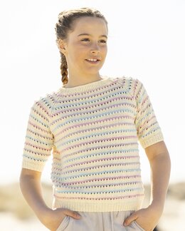Stickmönster till en kortärmad barntröja med randigt mönster – ett perfekt plagg för vår och sommar. Den klassiska desig...