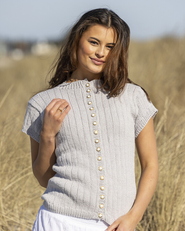 Stickmönster till en elegant och tidlös topp med dekorativ knäppning framtill. Den kortärmade modellen gör plagget perfe...