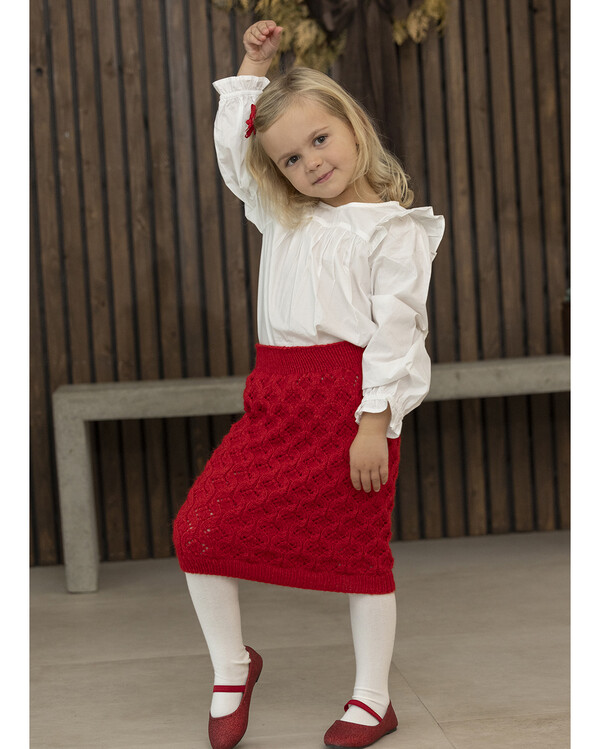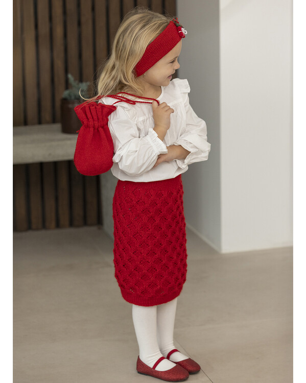 Sticka en charmig och klassisk julkjol till barn. Den vackert mönsterstickade kjolen har en tidlös form som sitter bekvämt i midjan och faller fint med sitt strukturrika mönster.