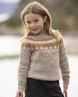 Sticka en mjuk och varm barntröja med detta charmiga stickmönster. Det rundstickade oket med diskret flerfärgsmönster ge...