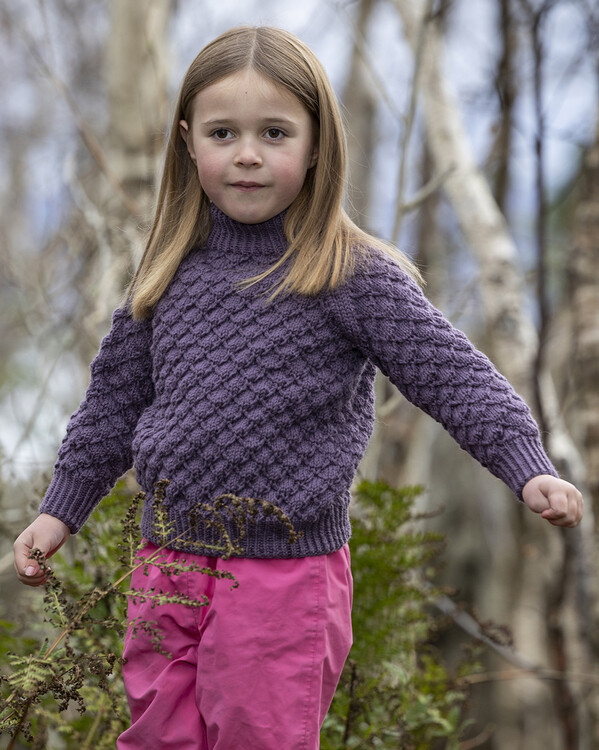 Sticka en varm och mysig barntröja med detta stickmönster. Den vackra strukturstickningen och den höga kragen ger både s...