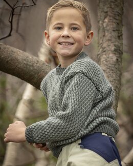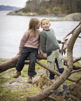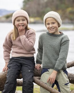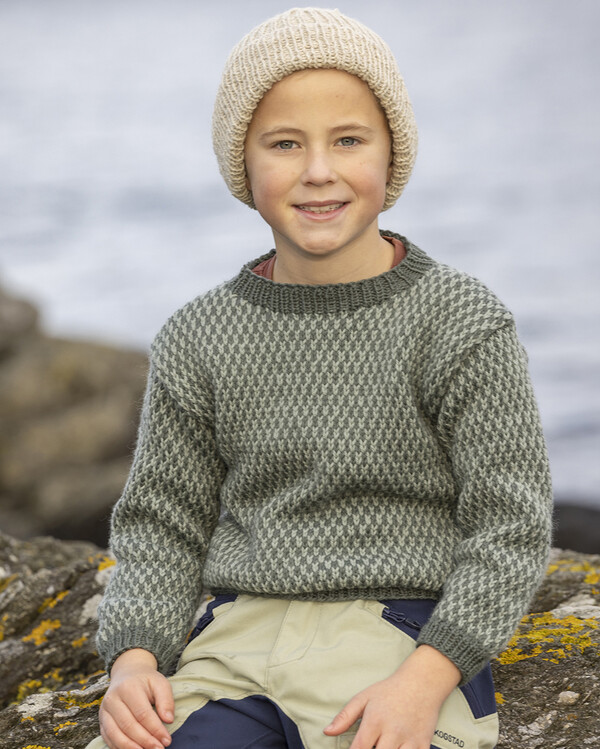Sticka en mjuk och slitstark barntröja med detta tidlösa stickmönster. Den tvåfärgade strukturstickningen ger ett levande men stilrent uttryck, samtidigt som den bekväma passformen gör tröjan perfekt för både lek och vardag.