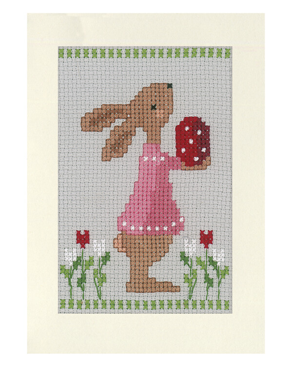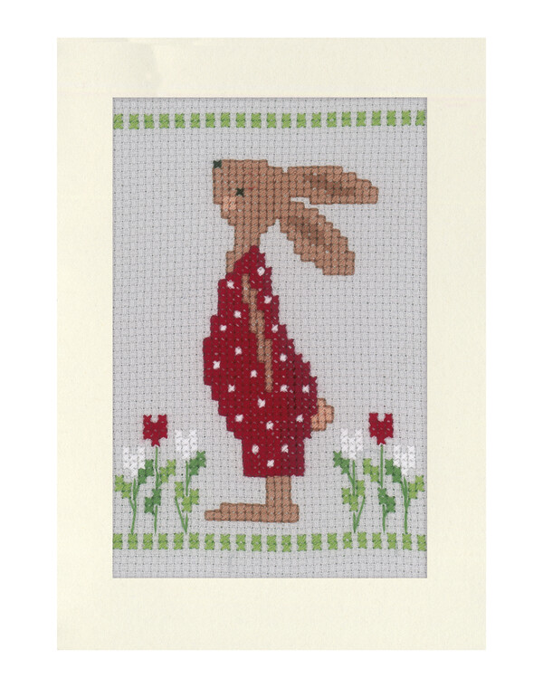 Broderas med moulinégarn i räknade korsstyg och långstygn på aidaväv, 5,4 rutor/cm. Kort och kuvert ingår.