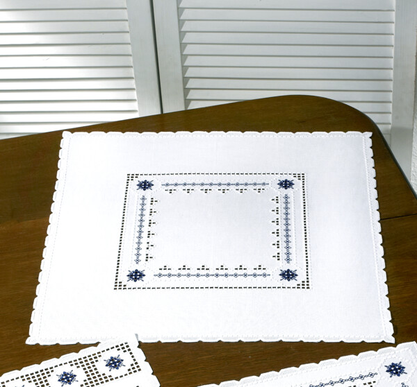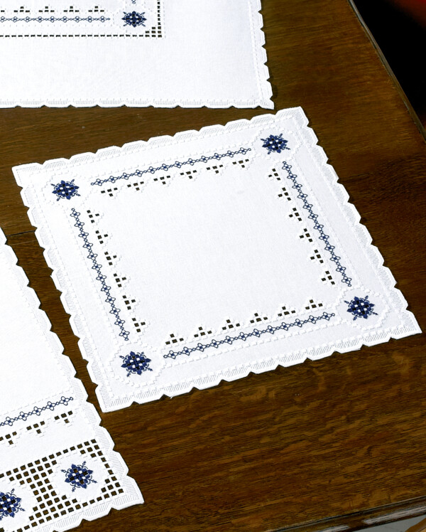 Broderier > Broderikit utan garn > Hardangerduk Blå design