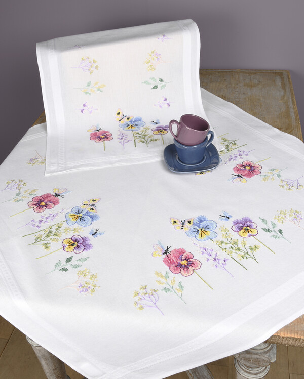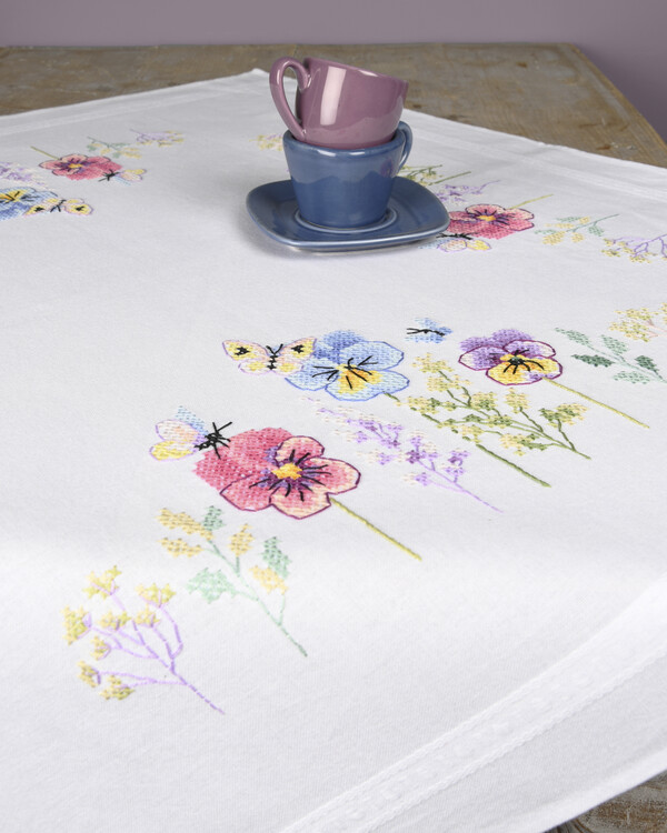 Brodera denna fantastiska duk med fina violer i underbara färger! Dekorera sedan ditt hem med denna eller varför inte överraska en god vän?