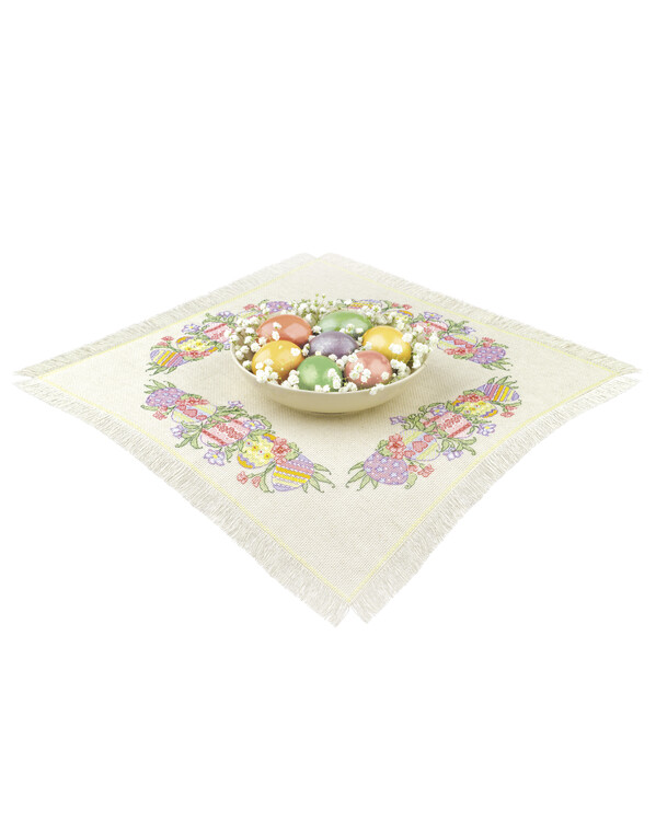 Välkomna våren med charmiga duk med färgglada påskägg! Ett lekfullt och glatt motiv som sprider värme, kreativitet och riktig påskkänsla – perfekt både som dekoration och som en stunds avkopplande handarbete.