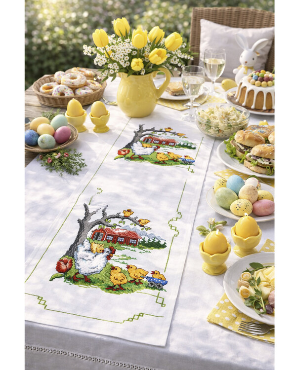 Broderier > Julbroderier > Juldukar & löpare > Broderikit Löpare Påskfamilj – korsstygn på bomullsväv