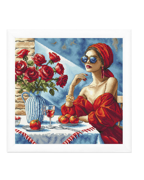Broderier > Broderikit utan garn > Broderikit Tavla Damen i rött