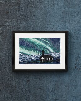 Brodera en unik och fin tavla med kyrkan och norrskenet! Broderas med moulinégarn i räknade kors-och efterstygn på vit...