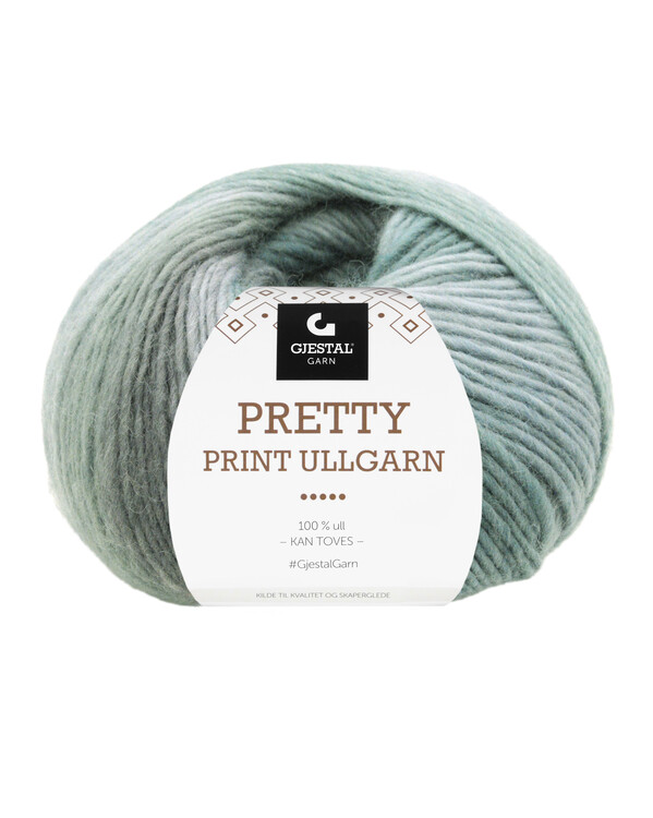 Pretty Print Wool garn från Gjestal Garn är ett mångsidigt enkeltrådigt ullgarn i vackra självrandiga tryckfärger. Perfekt för att skapa tröjor, koftor, kappor, mössor och halsdukar som får en extra touch av färg.