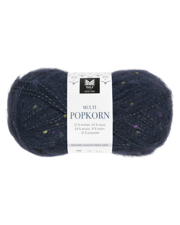 Multi Popkorn är ett multi färgat garn med många fina färger!Nystan; Ca 50 gr = 135 m. Kvalité; 12% Mohair 24% Ull 2...