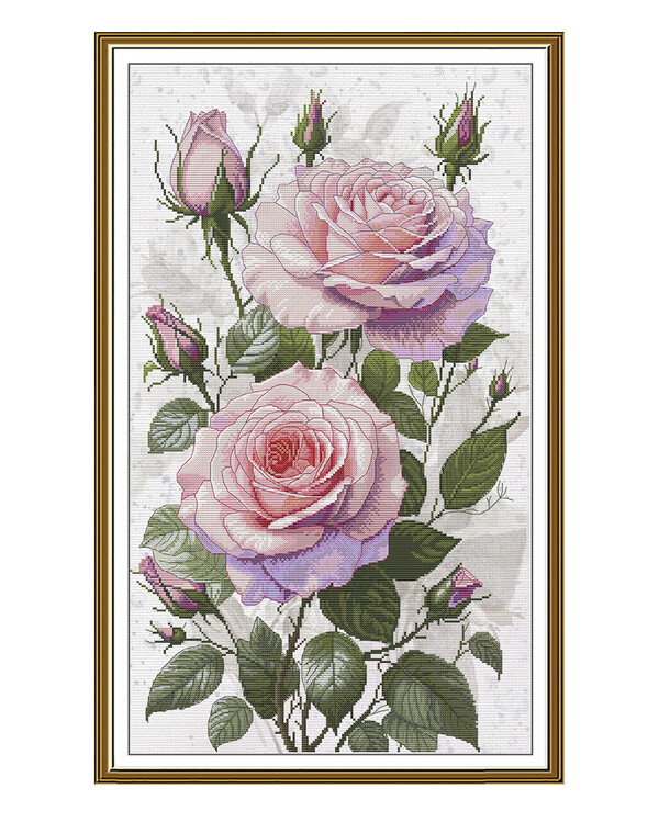 Fyll ditt hem med klassisk elegans genom detta vackra broderikit med två praktfulla rosor i full blom. De mjuka rosa ton...
